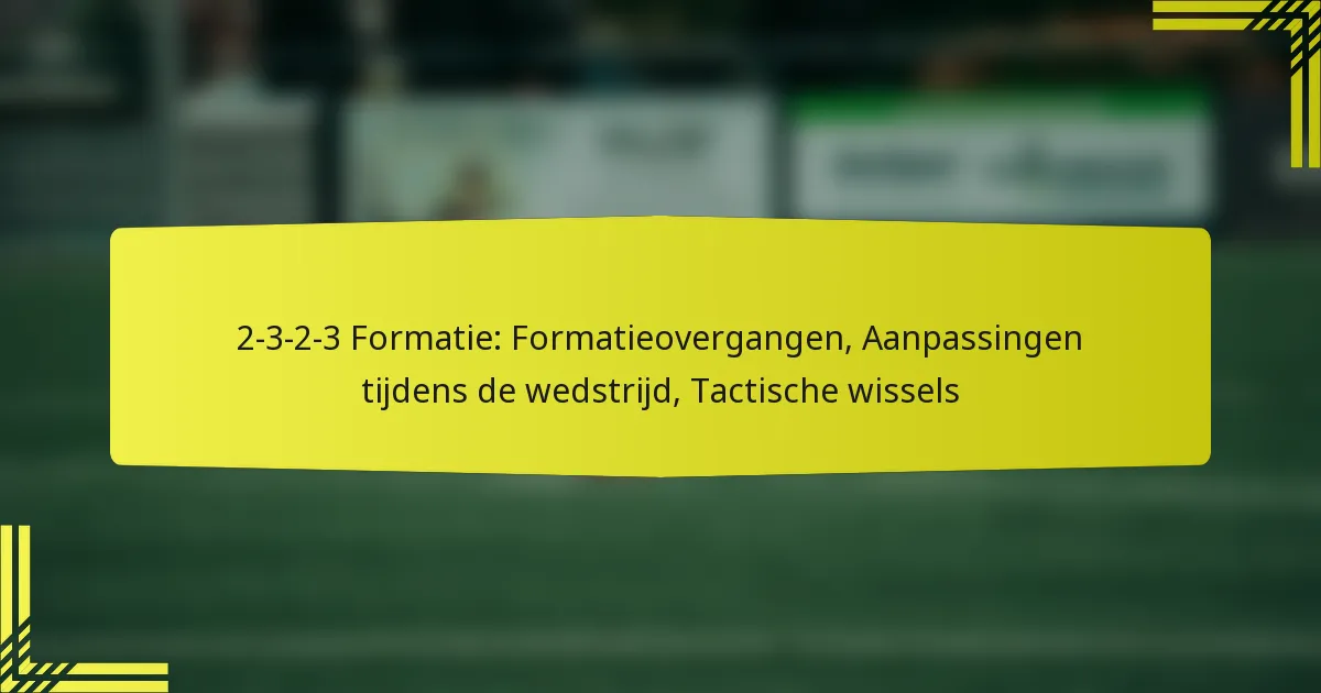 Aanpassingen aan de 2-3-2-3 formatie zijn noodzakelijk op basis van de strategieën van de tegenstander. Als ze tegenover een team staan dat uitblinkt in vleugelspel, kan het voordelig zijn om een middenvelder breder te positioneren om extra ondersteuning te bieden en overbelasting op de flanken te voorkomen. Deze tactische flexibiliteit kan helpen om de sterke punten van de tegenstander te neutraliseren.
